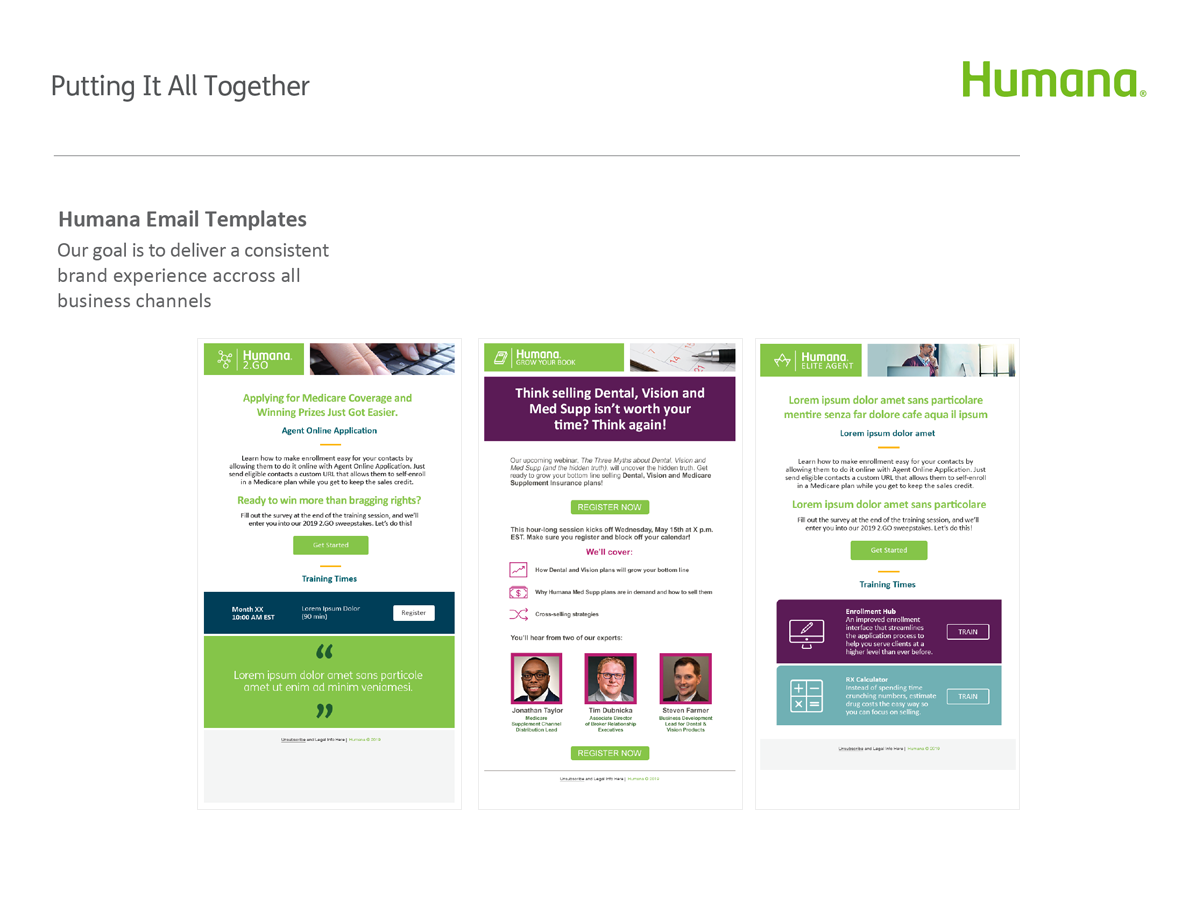 I designed and built the Humana digital email style guide and supporting HTML email templates. This included defining UI components such as buttons, headers, content modules, and layout patterns. I also helped translate brand standards into practical guidelines that designers and content teams could easily follow when building new communications.