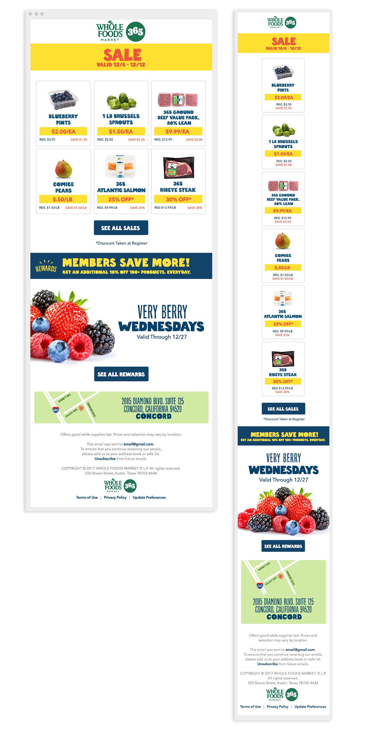 As part of the digital marketing team at Whole Foods, I contributed to the development of a scalable email design system used across national campaigns and regional store communications. The goal was to create modular components that allowed marketing teams to quickly build emails while maintaining consistent branding and usability. Within the system, I led the creation and ongoing management of two key components: the store location map module and the seasonal header system, both of which became foundational elements used across campaigns throughout the year.