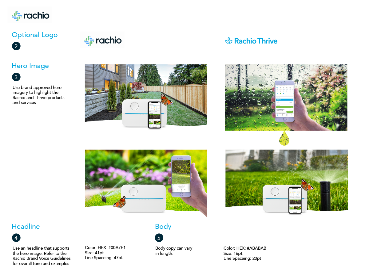 I art directed, designed, and coded modular email templates that formed the foundation of Rachio’s email design system. Working closely with marketing and content teams, I created reusable components and guidelines that ensured brand consistency while allowing campaigns to be assembled quickly.